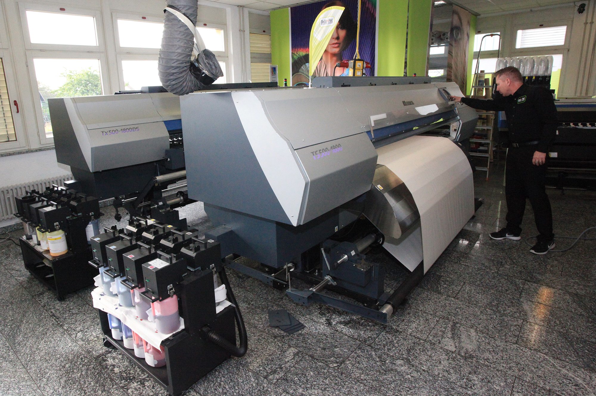 Die vergangenen Jahre haben wir effektiv genutzt, um einerseits unsere bisherigen Erfahrungen und andererseits unser Produktangebot zu vergrößern und anzupassen, was zu einem erfolgreichen Wachstum führte. Heute bauen wir unser Sortiment kontinuierlich aus, um unseren Kunden stets qualitativ hochwertige Produkte anbieten zu können. Außer digitalen Großformat-Druckern, Fixiermaschinen, Schneideplottern, Finishing-Systemen und Software bieten wir auch die dazugehörigen Verbrauchsmaterialien (wie Tinten, Transferpapiere) an, die perfekt auf die Arbeit mit unseren Drucksystemen abgestimmt sind. Die frühzeitige Einführung neuer Entwicklungen bildet die Grundlage für den Vorsprung im Markt. Unsere hohe Fachkompetenz und das notwendige Anwendungs-Know-How ist ein weiteres Plus, von dem unsere Kunden und Partner profitieren können.