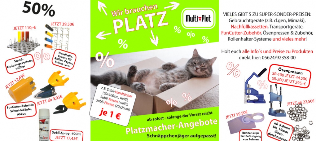 Vieles gibt´s zu SUPER-SONDER-PREISEN: Gebrauchtgeräte (z.B. d.gen, MIMAKI), Nachfüllkassetten, Transportgeräte,