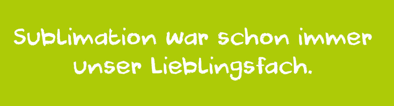 Sublimation ermöglicht Ihnen, individuell bedruckte Textilien in beeindruckender Qualität herzustellen. Das fertige Produkt ist farbbrillant, waschfest, UV-beständig, kratzfest, chemisch belastbar und hautverträglich. Eine weitere Behandlung ist nicht notwendig. Die Herstellung ist umweltfreundlich, erfordert kein Arbeiten mit Lösemitteln und schafft kein Abwasserproblem.